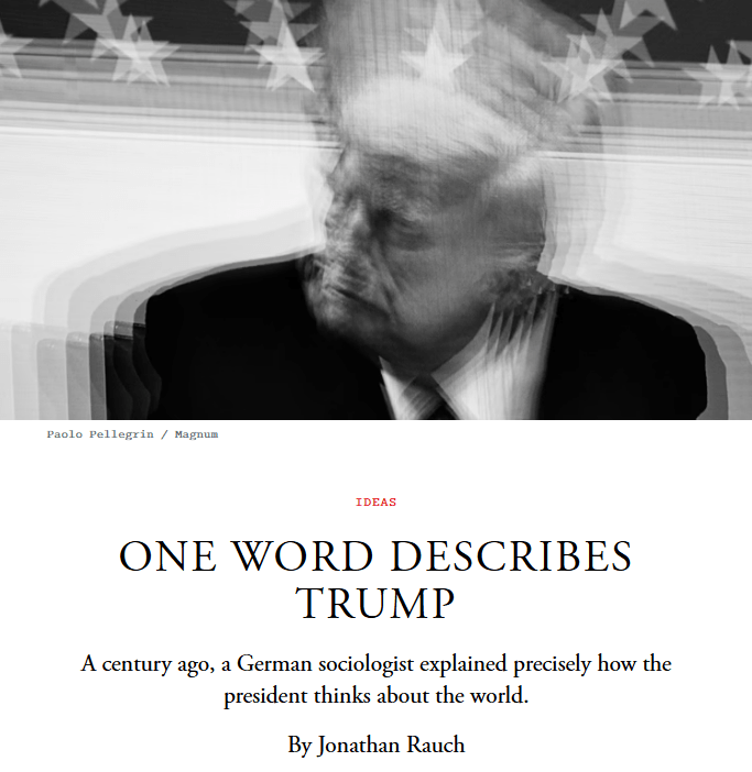Several political scientists are noting that our new regime here in the US is an example of what Max Weber called “Patrimonialism.” I first saw this in Jonathan Rauch’s piece in The Atlantic the other day.