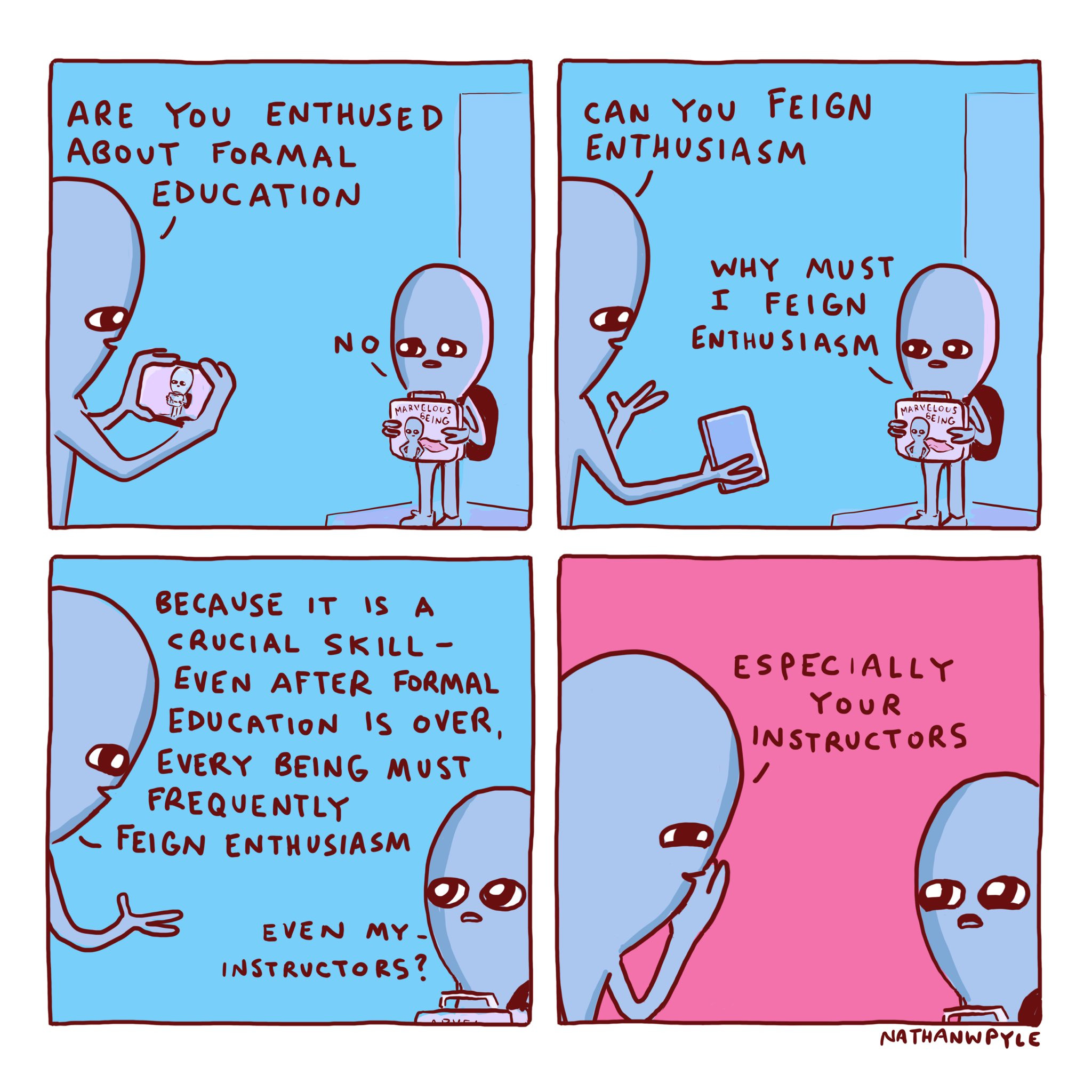 Enthusiasm isn’t the goal of schooling – but we (and the kids) shouldn’t have to fake it.