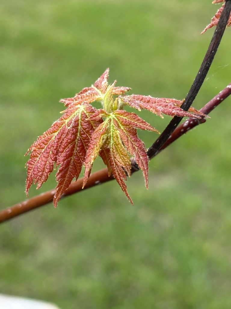 The red maple we planted in the fall has its first leaves!