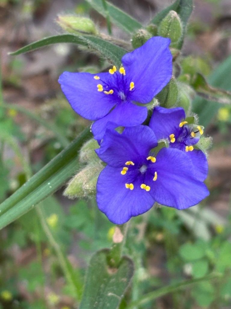 The spider worts along the road I’m walking this morning range from blue to purple in color.