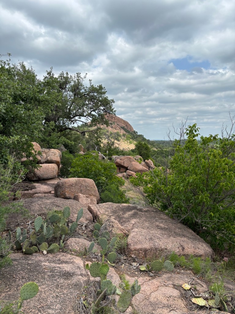 It’s been about 25 years since I last climbed Enchanted Rock. That time it was a foggy morning. This time it was mostly cloudy, mid 80s, & breezy.