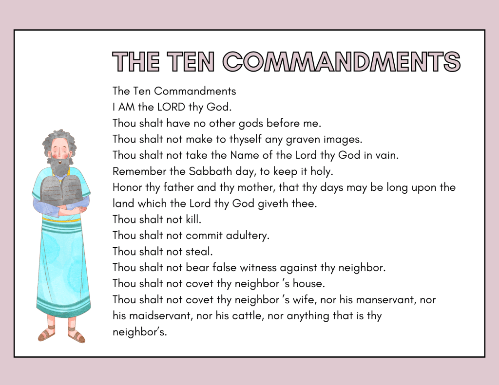 - They must be posted in the early modern English of the King James Version of the English Bible. Does this indicate that the King James Version is the most authoritative translation available? Does it suggest that one must apprehend the commands via archaic language? Does this make it more or less likely that any students reading the Commandments will take them seriously?